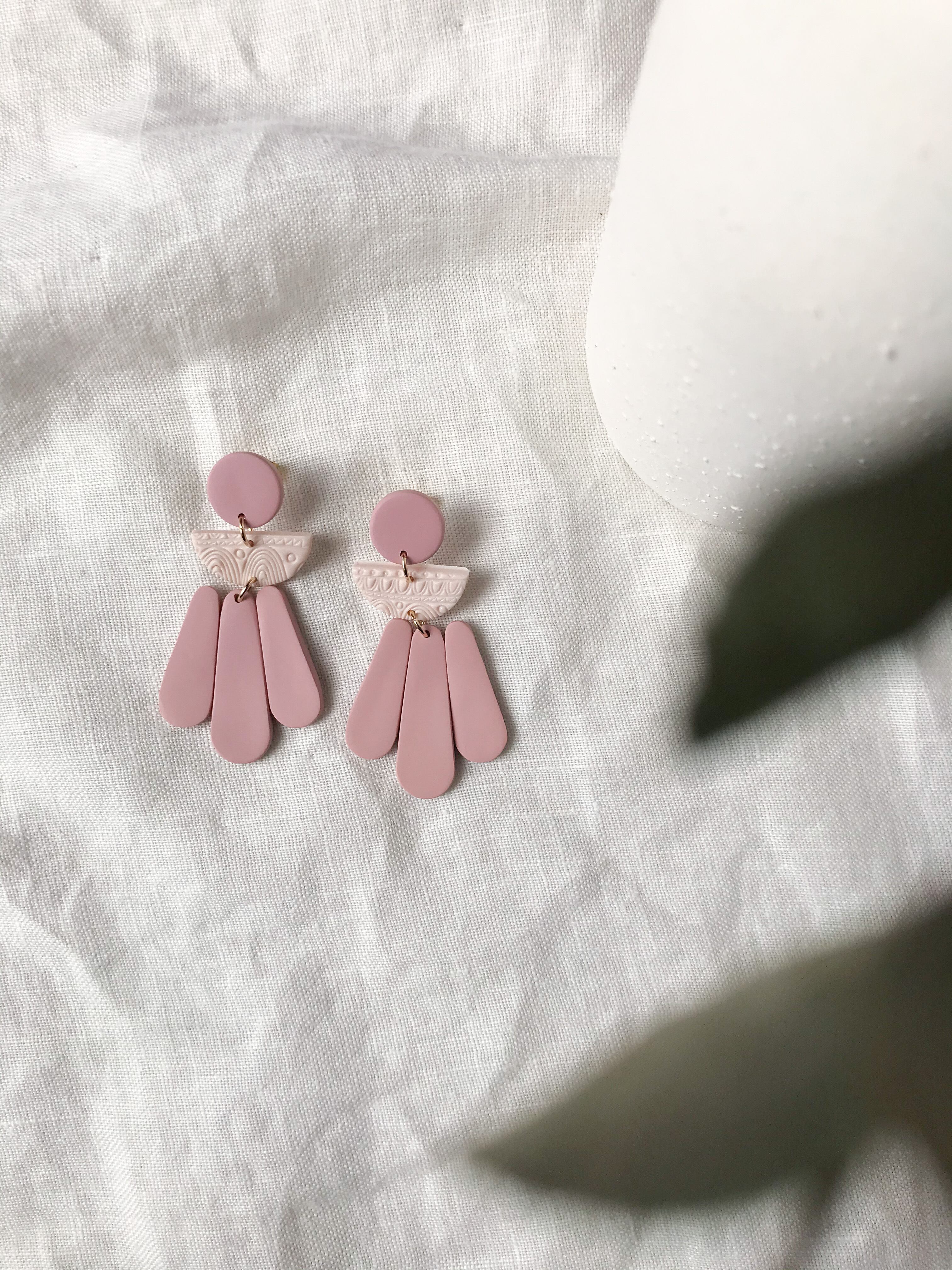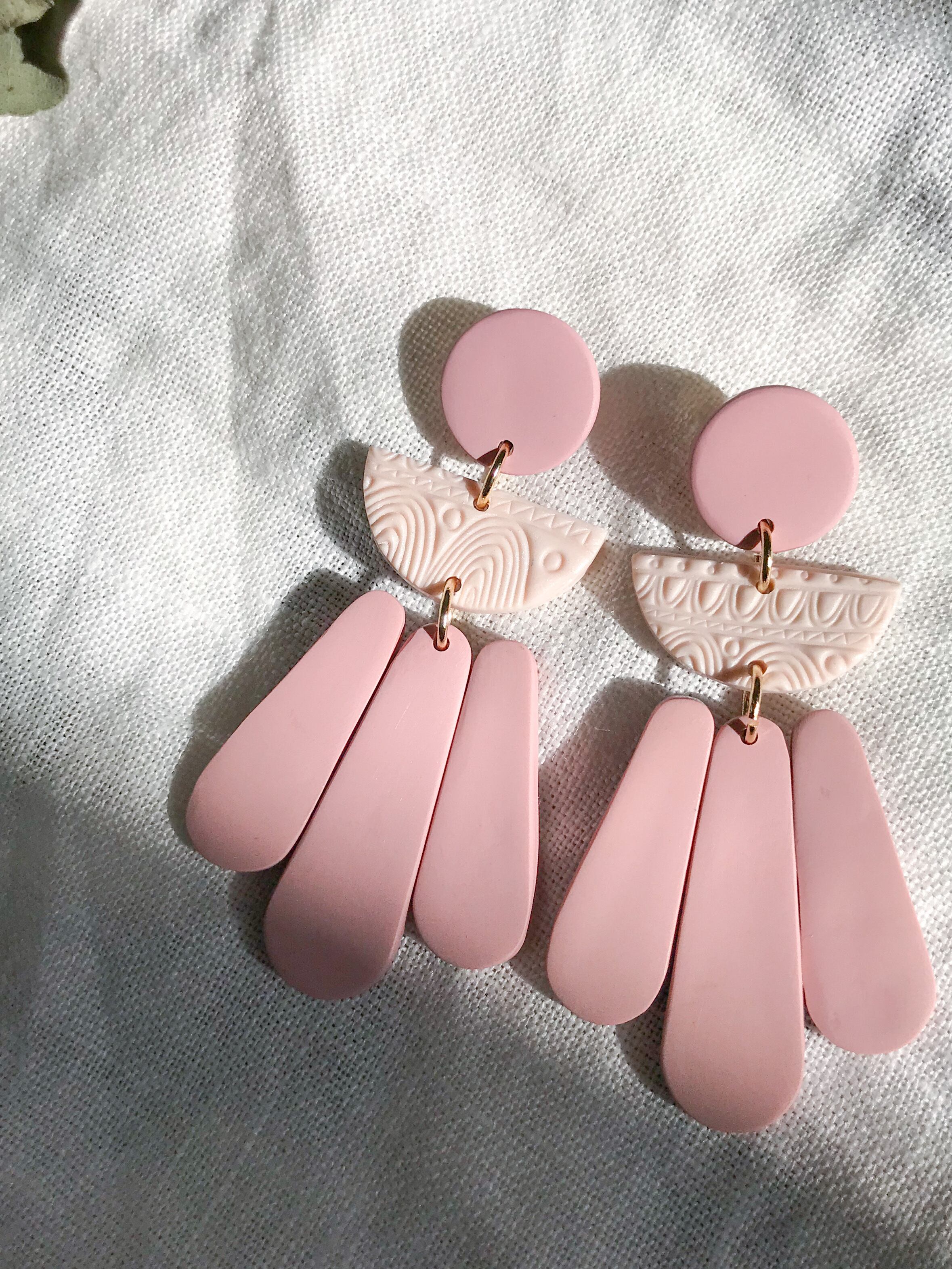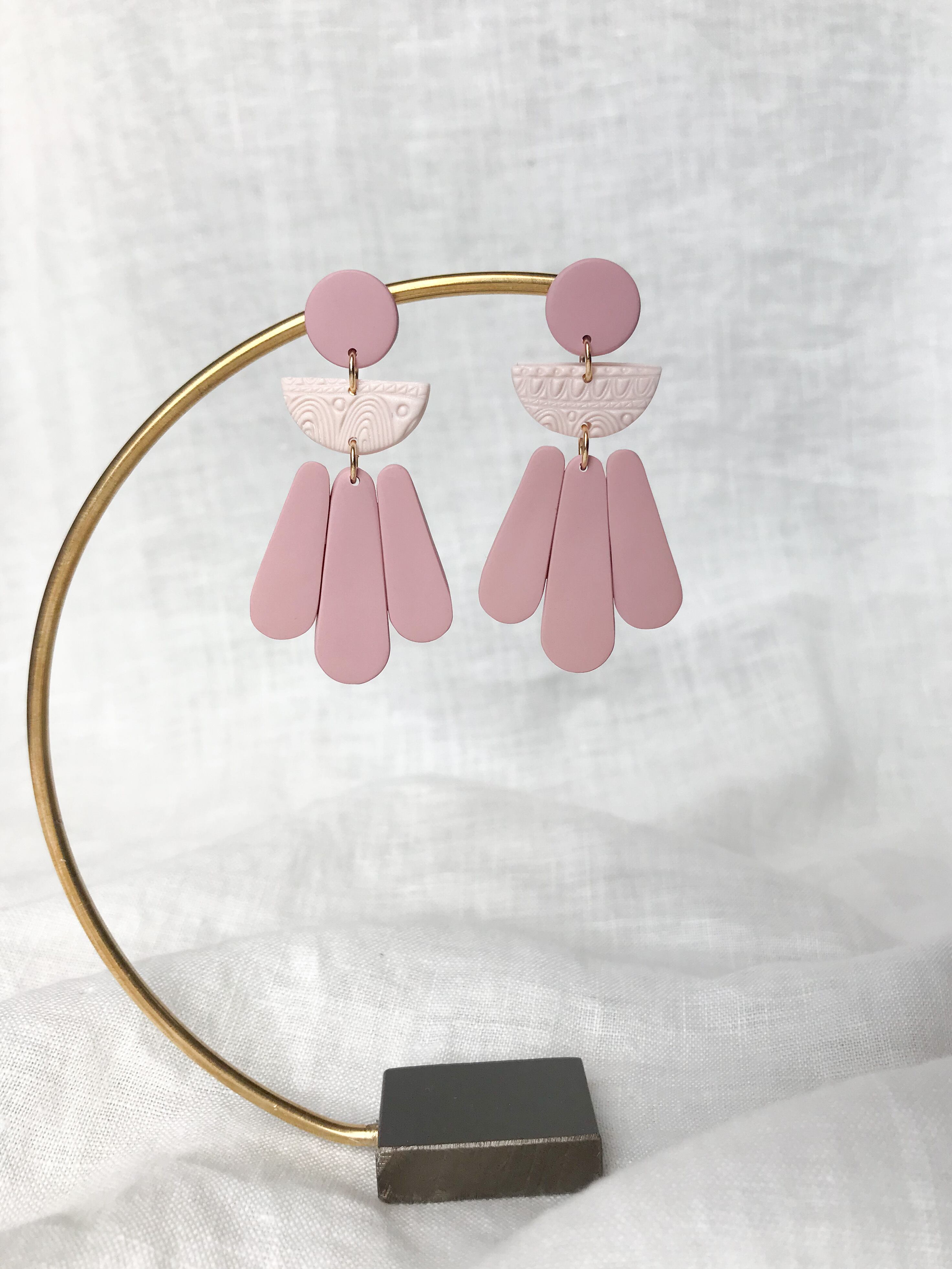 くすみピンクで甘さ控えめ、レディーなボヘミアンピアス。
